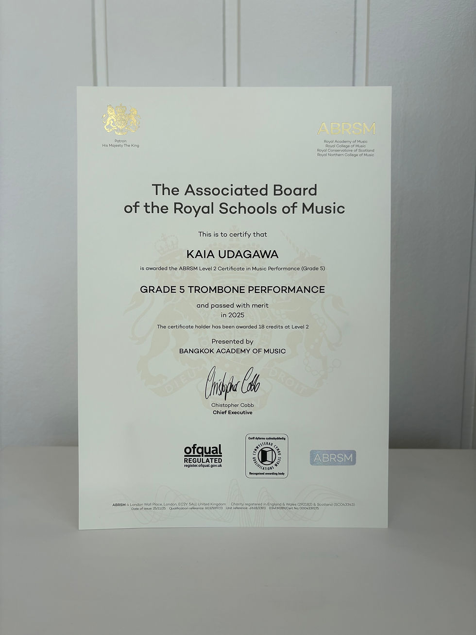 Congratulations to Kaia on achieving a Pass with Merit for ABRSM Trombone Grade 5 in July 2025.